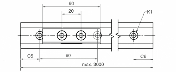 Order no. Max. rail lengths a C4 A3 C5=C6 h h1 K1* ly lz Weight of rail Price / m